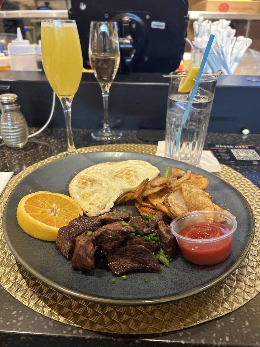 Was super hungry and contemplated ordering a steak at an airport but boy was I surprised. We decide to try this place because it smelled good near our terminal. The NY STRIP 12 OZ was cooked PERFECTLY medium well. Ive had a lot of steak in my life and this was up there with the best. We ordered the sweet potato fries and they were awesome too as well as the cheese curds. I’ll definitely be back anytime I’m in NY. Thank you for making my experience a great one.